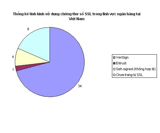 Theo một nghiên cứu độc lập từ ChungChiSo, hiện tại Việt Nam có 48 ngân hàng có yếu tố Việt Nam (bao gồm ngân hàng TM nhà nước, NH chính sách, NH TMCP, NH liên doanh). Trong đó có 40 ngân hàng đã trang bị hệ thống giao dịch trực tuyến, trong đó có 35 đơn vị sử dụng chứng thư số SSL hợp lệ cho hệ thống. 34 trong số đó dùng chứng thư số của VeriSign. Đặc biệt trong 48 ngân hàng này, có 9 ngân hàng Việt Nam hoàn toàn chưa trang bị hệ thống giao dịch trực tuyến dành cho khách hàng.