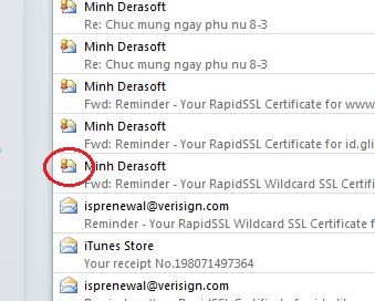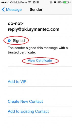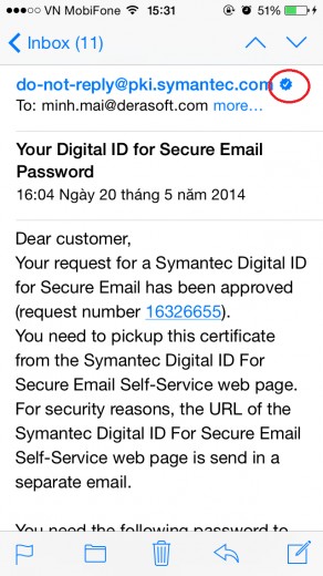 Trên iPhone, các email được ký số sẽ có icon hiển thị: