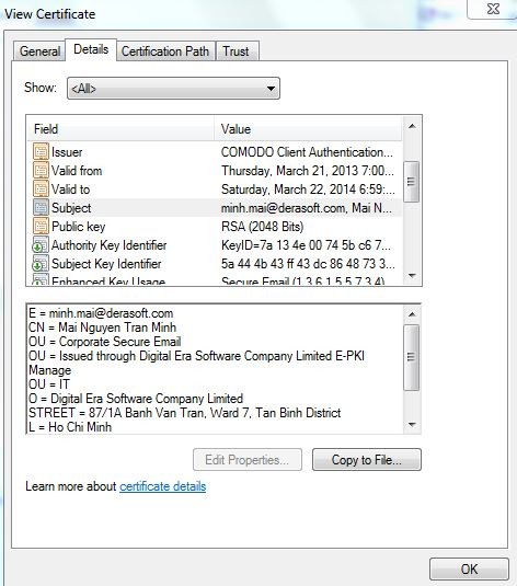 Khi mở email ra, sẽ có thể thấy thông tin của người sở hữu chữ ký số đó: